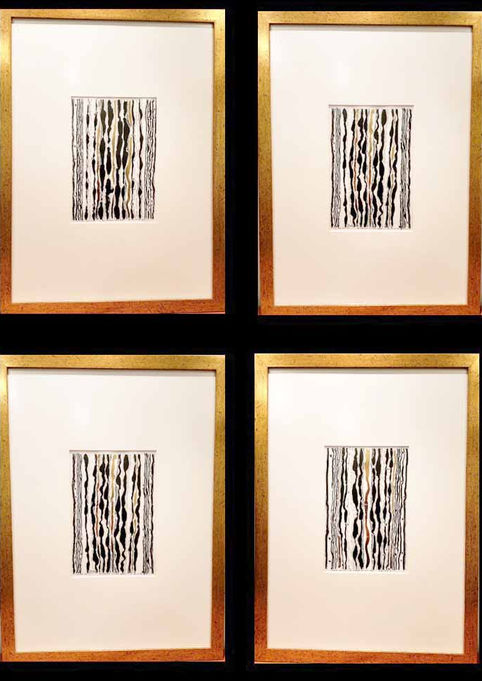 Nanquim sobre papel Fabriano decorado com folhas de ouro e cobre